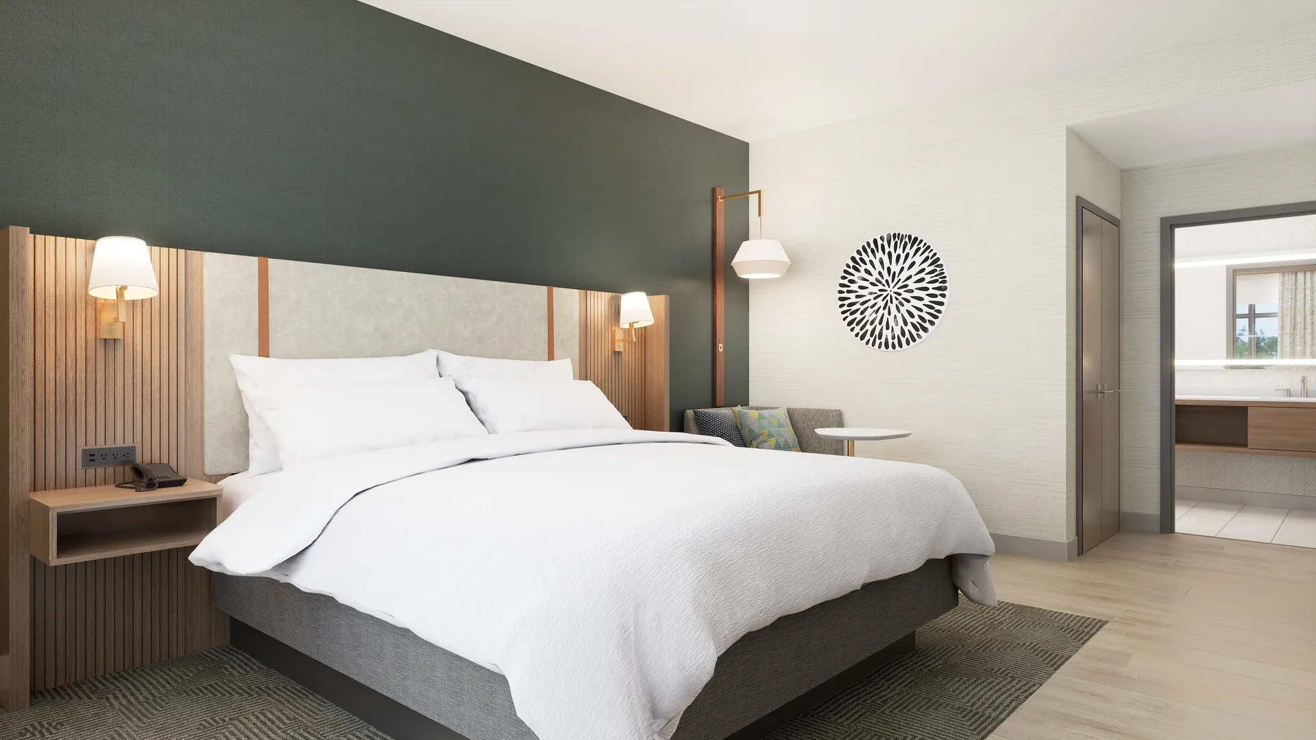 Space-saving, integrated storage designs elevate guest room functionality while maintaining a clean visual aesthetic.